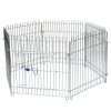 Вольєр, виконаний із прутів оцинкованого металу. Складається із 6 секцій, які швидко з’єднуються між собою без допомоги спеціального інструменту. Його можна використовувати і як домашній вольєр, а також застосовувати поза домом. Матеріал, з якого виготовлений вольєр, нешкідливий для здоров’я тварини.